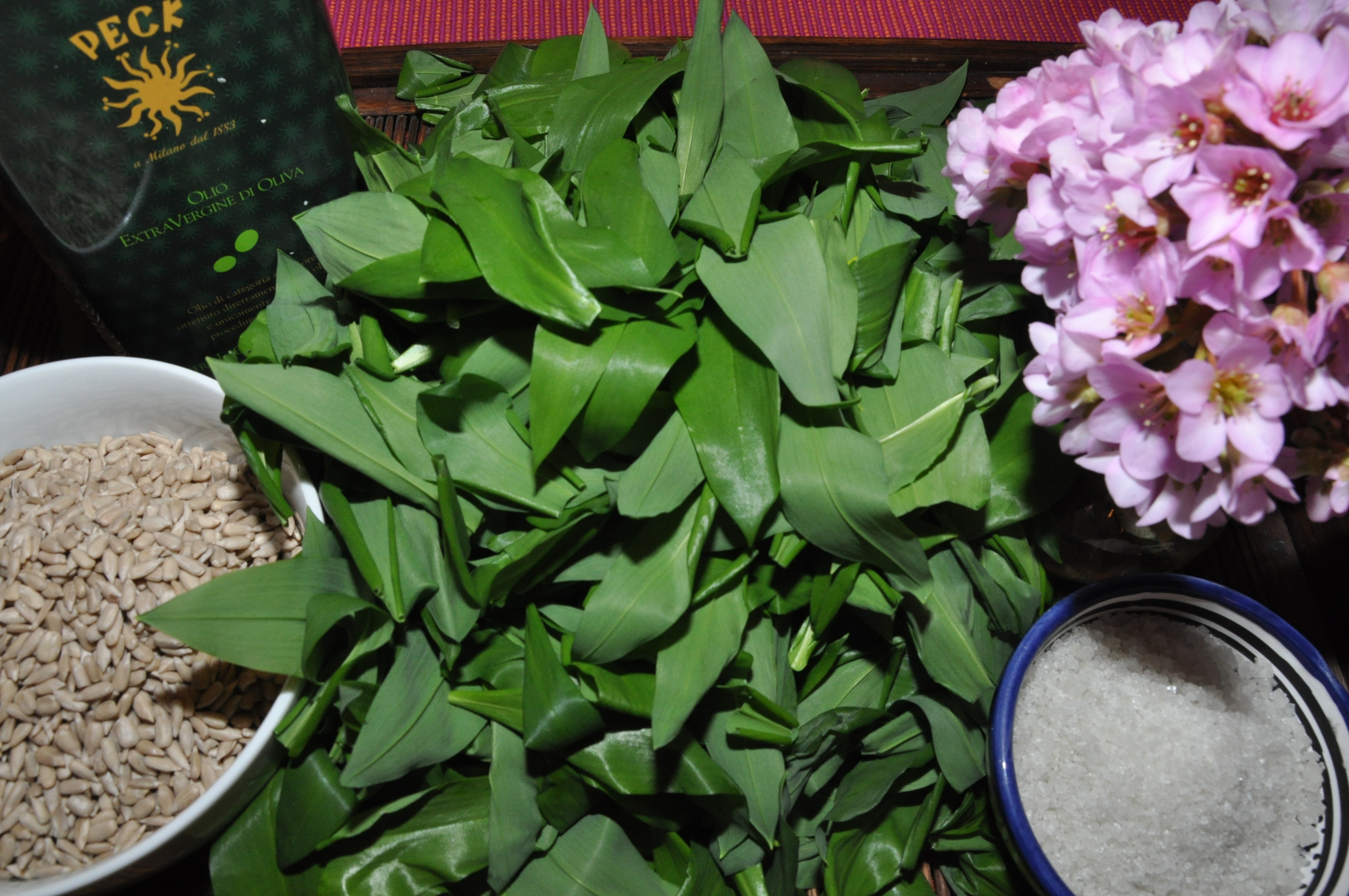 Dafür braucht ihr Bärlauch, Sonnenblumenkerne, grobes Meersalz und ein gutes Olivenöl oder Rapsöl.