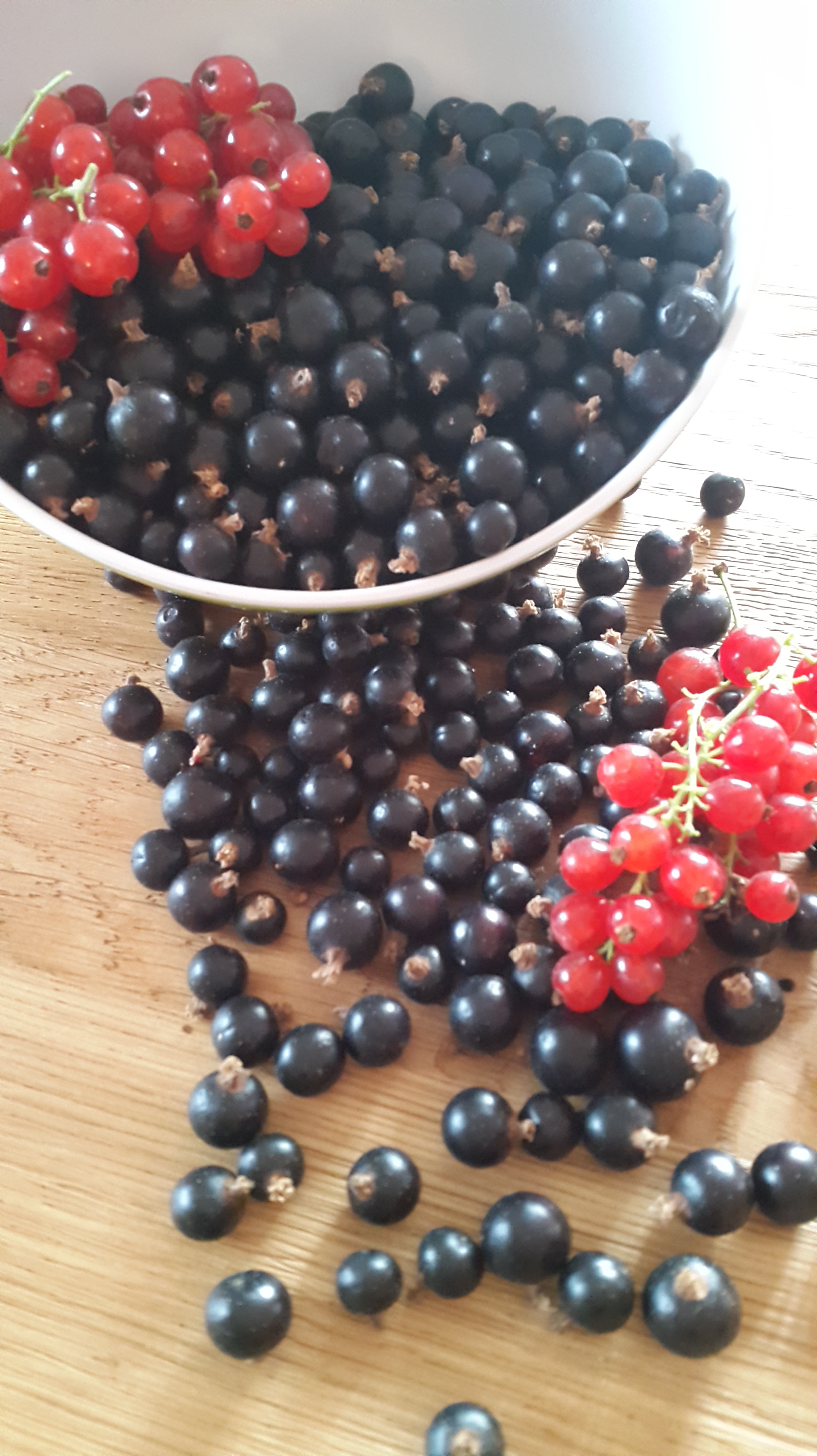 • Zuerst 1 kg schwarze und rote Ribisel pflücken. Ok, das ist ein bisschen mühsam, aber es zahlt sich aus. Alternative: am Markt kaufen. Nehmt mehr schwarze als rote Beeren, das schmeckt besser.