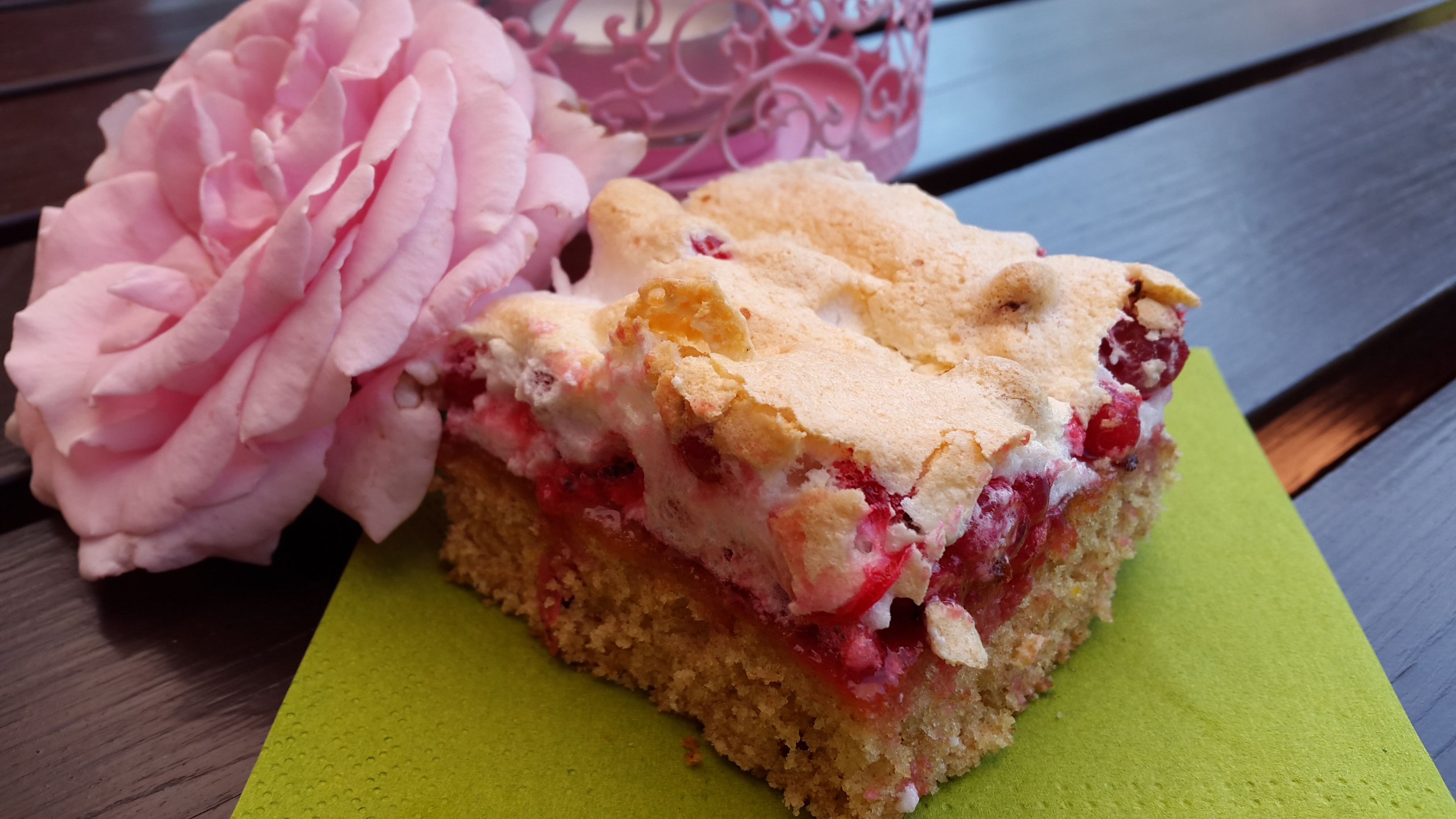 Ribiselkuchen mit SchneehaubeRibisel-Schneehaube: